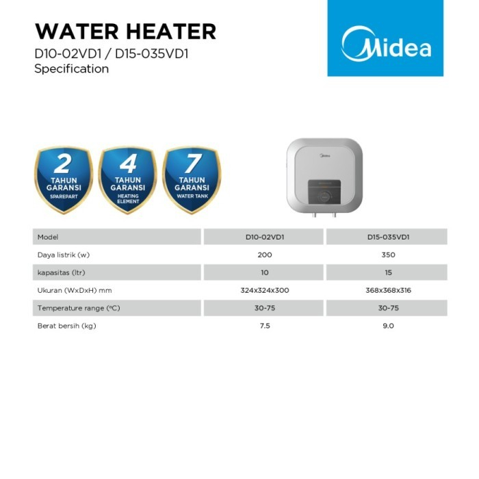 Midea Water Heater D15-02VD1 Pemanas Air 15 Liter
