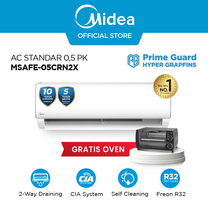 [TURUN HARGA] Midea AC Standard 1/2 PK ( 0.5 PK ) - Freon R32 Series MSAFE-05CRN2X (Unit Indoor & Outdoor Only)