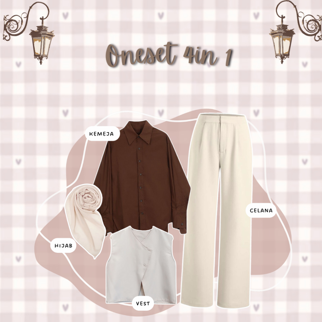 One Set 3 in 1 fit Wanita Kekinian Hijab Kemeja Vest CelanaSet Korean Style Remaja LO56