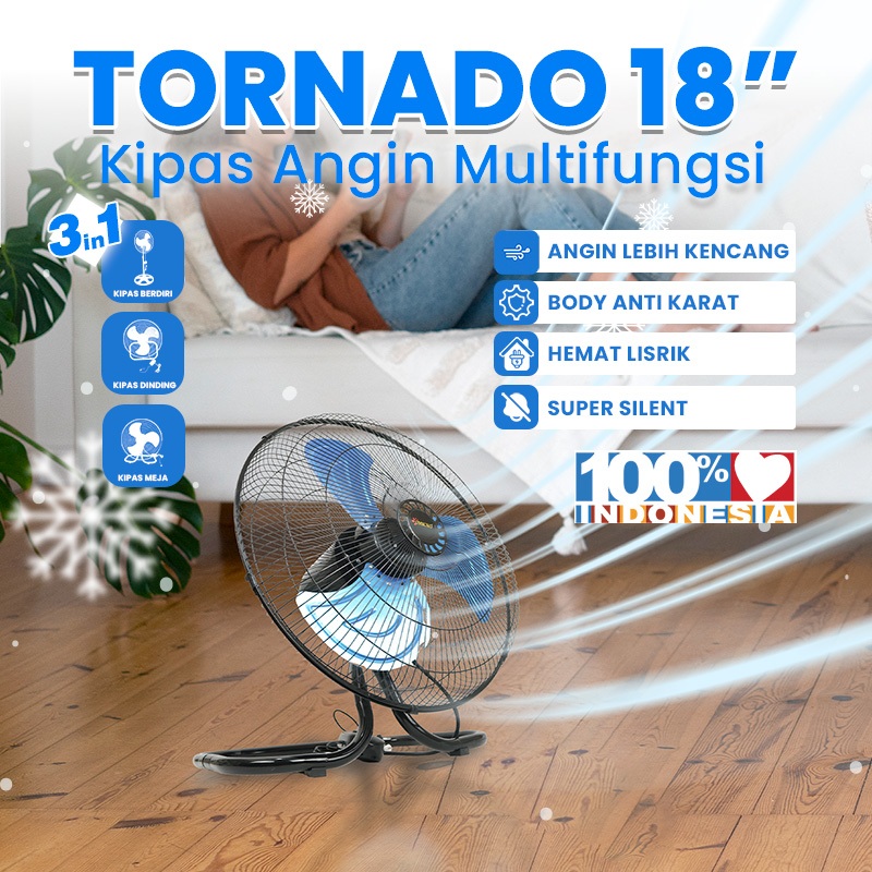 Kipas angin besi JUMBO 18” OMICKO 3in1 / TORNADO FAN/kipas angin dinding/kipas/kipas angin berdiri/kipas angin ac