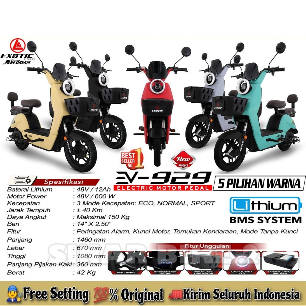 [Mall] Sepeda Listrik EXOTIC EV 929 BY PACIFIC Electric E Bike 600 Watt Baterai Lithium