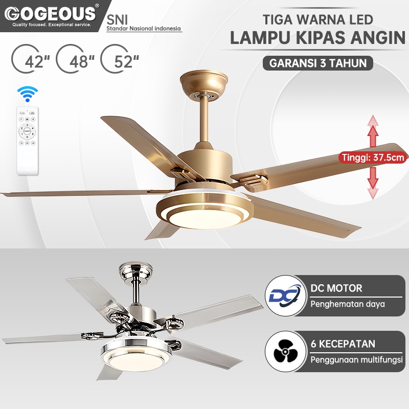 Lampu Kipas Angin Plafon Nordik 52inci 6 Kecepatan 48W Besi DC Kipas Lampu Gantung Plafon Remote