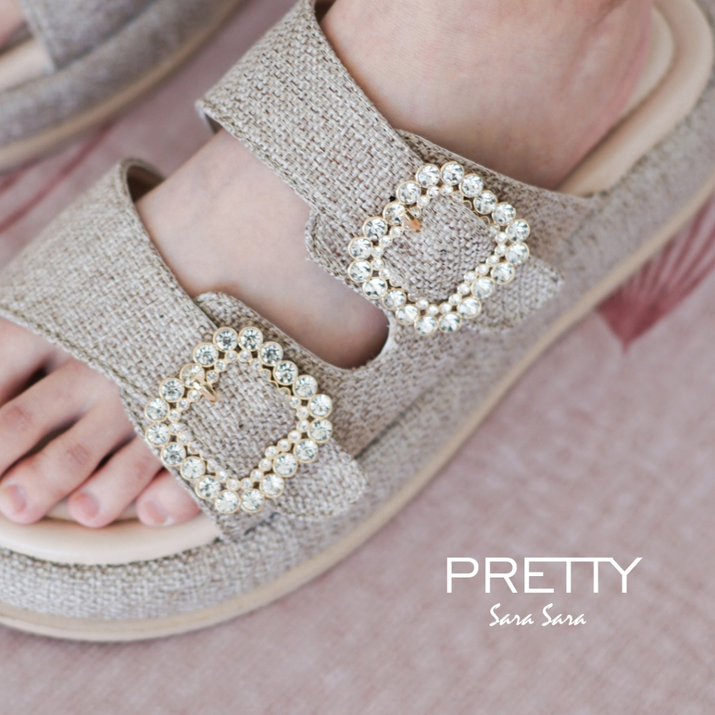 Sara Sara Pretty Sandal Slop Platform Wanita Gesper Berlian
