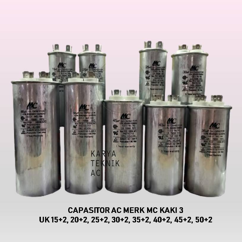 Capasitor AC Merk MC Kaki 3 Ukuran Lengkap