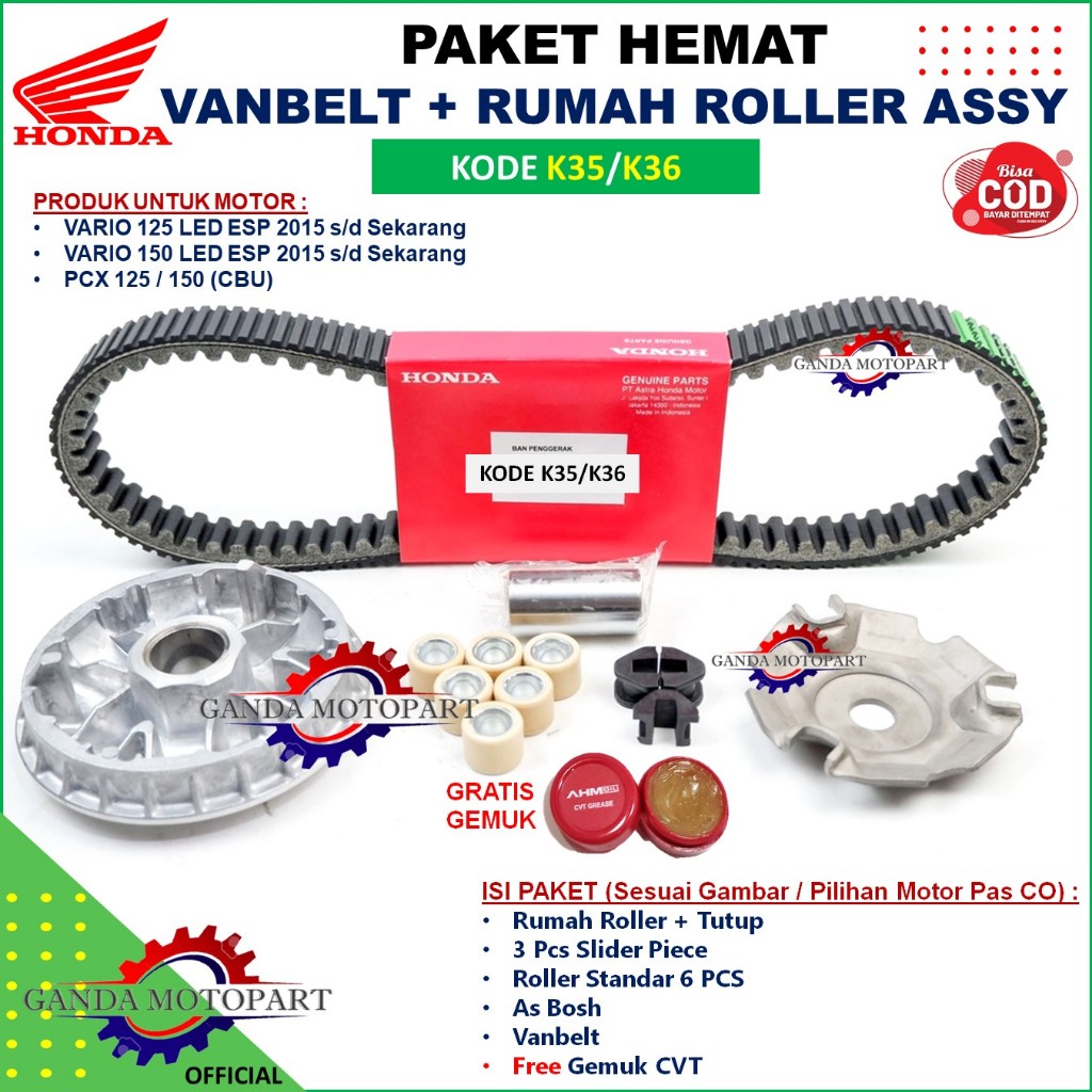 Paket Vanbelt Kipas Rumah Roller Set Vario 125 fi Tekno KZR Vario 125 150 Led Esp K35 K36