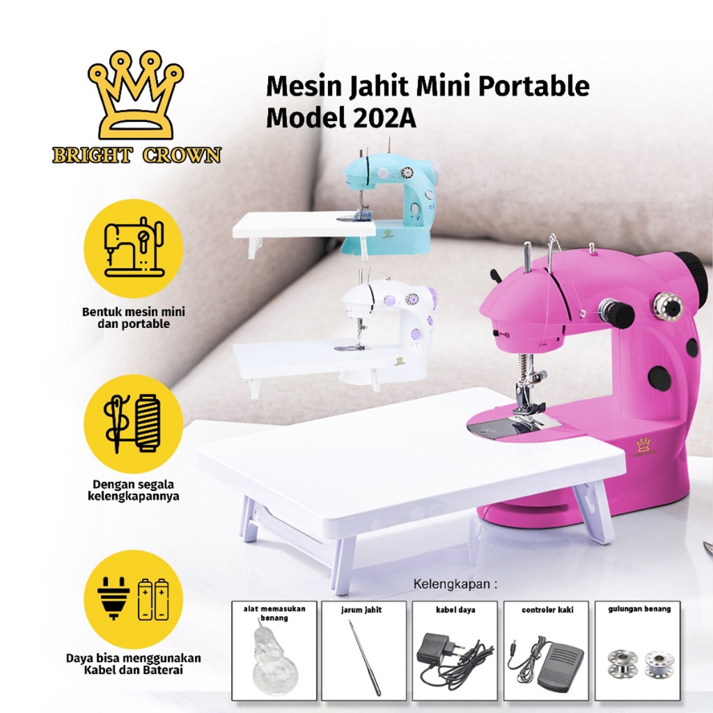 Bright Crown Terbaru Mesin Jahit Mini Portable 202A Mesin Jahit Multifungsi + Lampu Malam Rapi&Kokoh