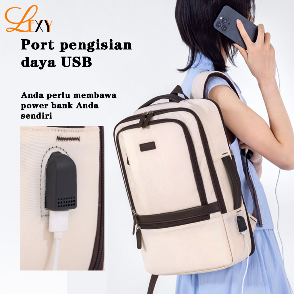 LEXY Expandable Tas Ransel Laptop 16 inch Waterproof Tas Ransel Wanita Tas Kasual Dengan Port USB