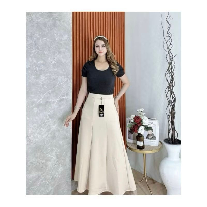 AUDY SKIRT ROK WANITA MAXI LOOSE SKIRT KOREAN STYLE ROK FLARE SCUBA PREMIUM BASIC ANTI KUSUT