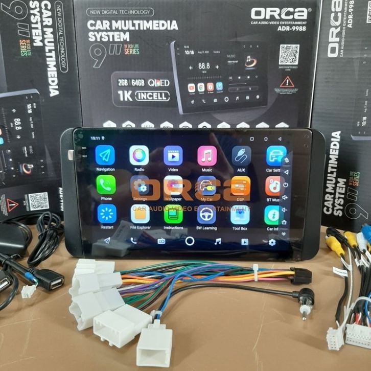 HEAD UNIT ANDROID AGYA / AYLA 2023 - UP AVANZA /XENIA 2023 - UP ANDROID 9 INCH ORCA RAM 2/64 GB - INCELL BLACK SCREEN