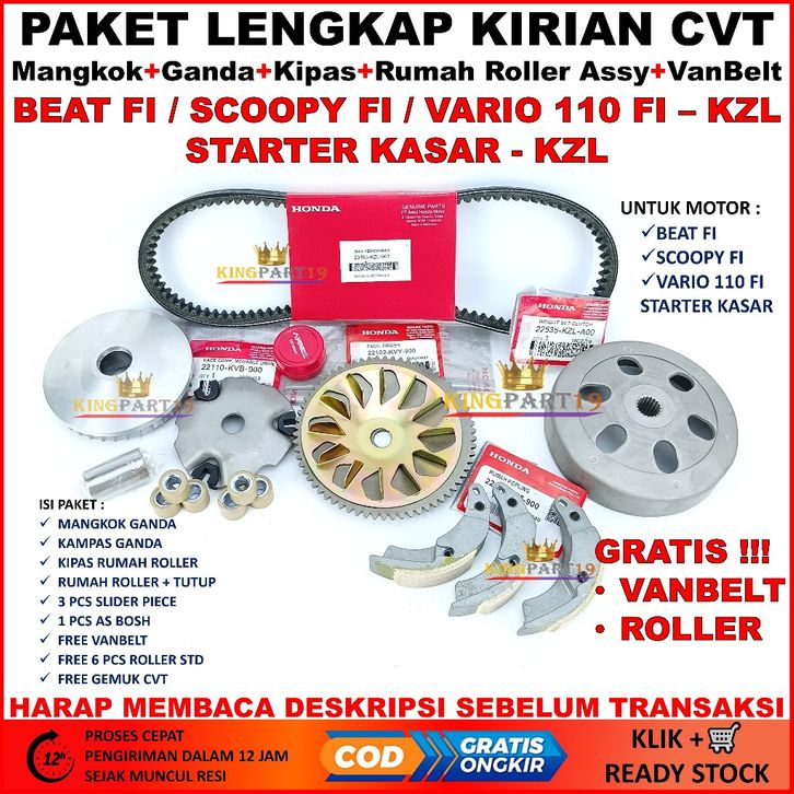 paket cvt Paket CVT Beat Fi Vario 110 Fi Scoopy Fi Starter Kasar KZL Mangkok Ganda Kipas Rumah Roller Vanbelt Paket CVT