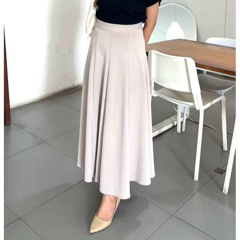 AUDY SKIRT ROK WANITA MAXI LOOSE SKIRT KOREAN STYLE ROK FLARE SCUBA PREMIUM BASIC ANTI KUSUT
