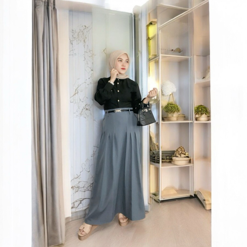 JESIJOY SKIRT-ROK FLARE WANITA KOREAN STYLEBAHAN SEMIWOLL LOKAL_MODEL PANJANG Dan MIDI