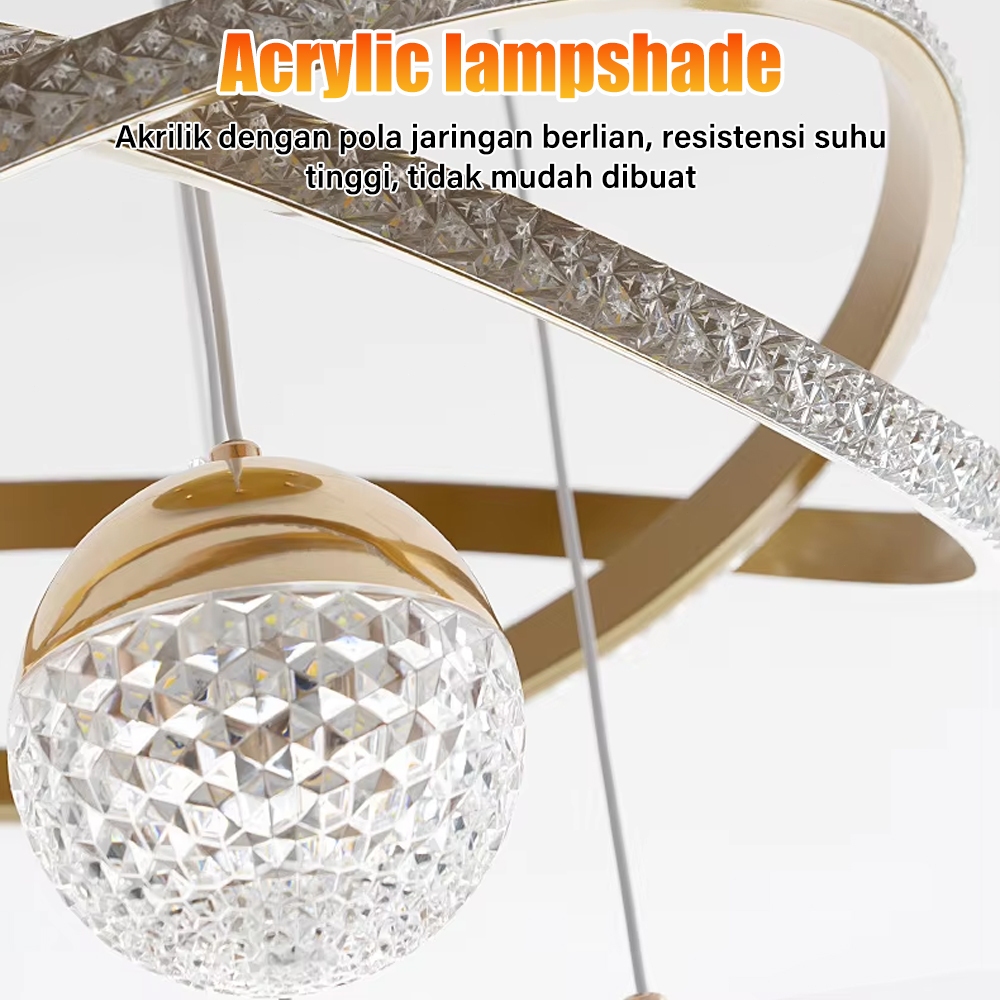 Lampu Gantung Dekoratif Minimalis Kristal LED 3 Warna - Mewah untuk Ruang Tamu, Ruang Makan, dan Restoran