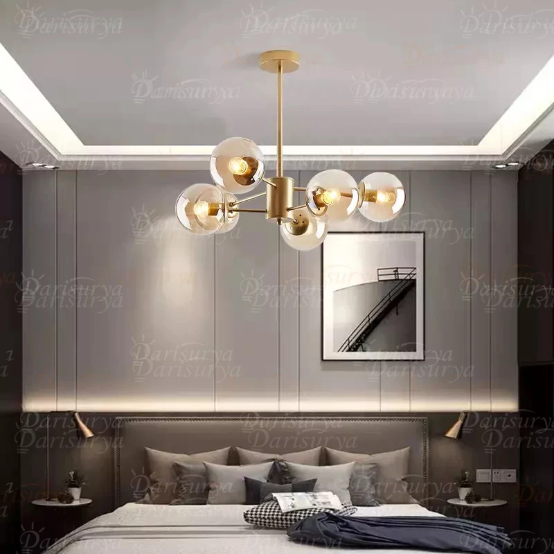 Lampu Hias Gantung Minimalis Bola berbilang Lampu Ruang Tamu Nordic Modern Bola kaca Dekorasi Rumah Tangga/Kamar Tidur
