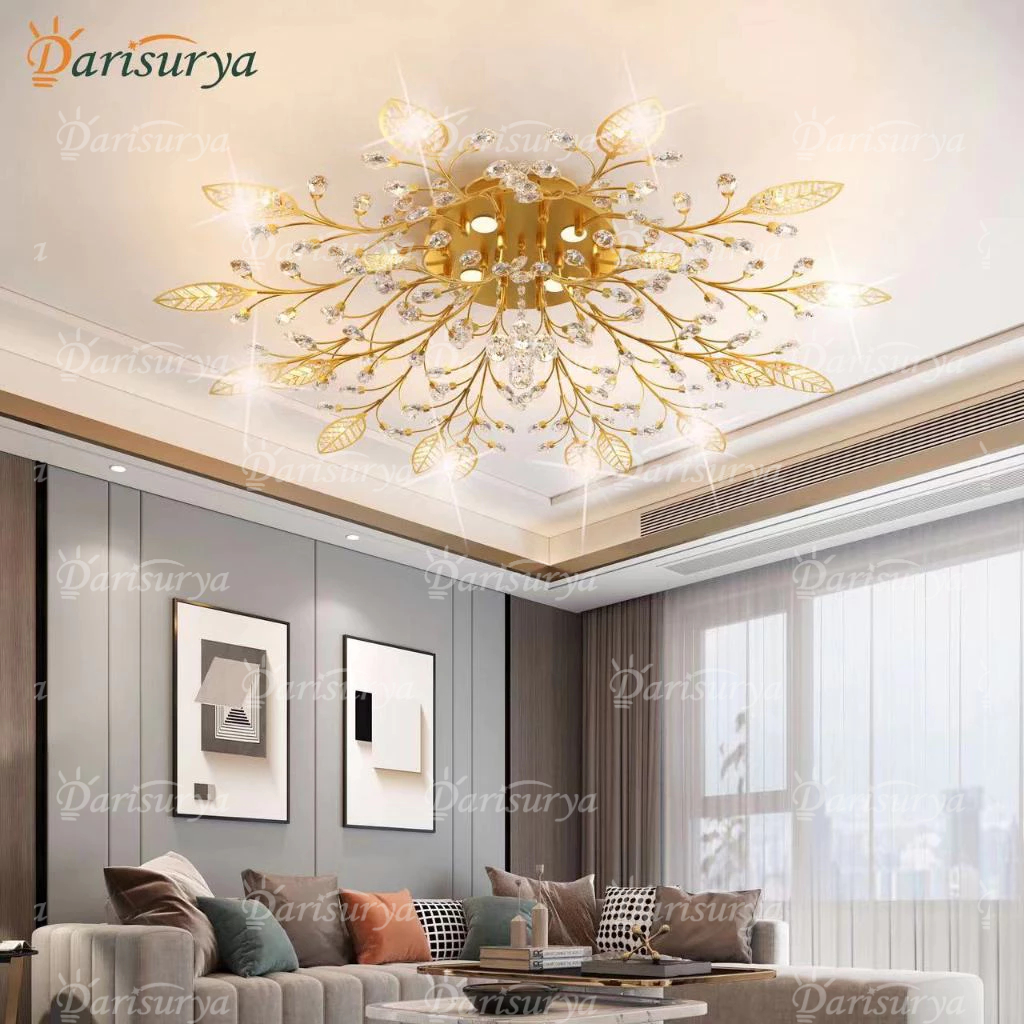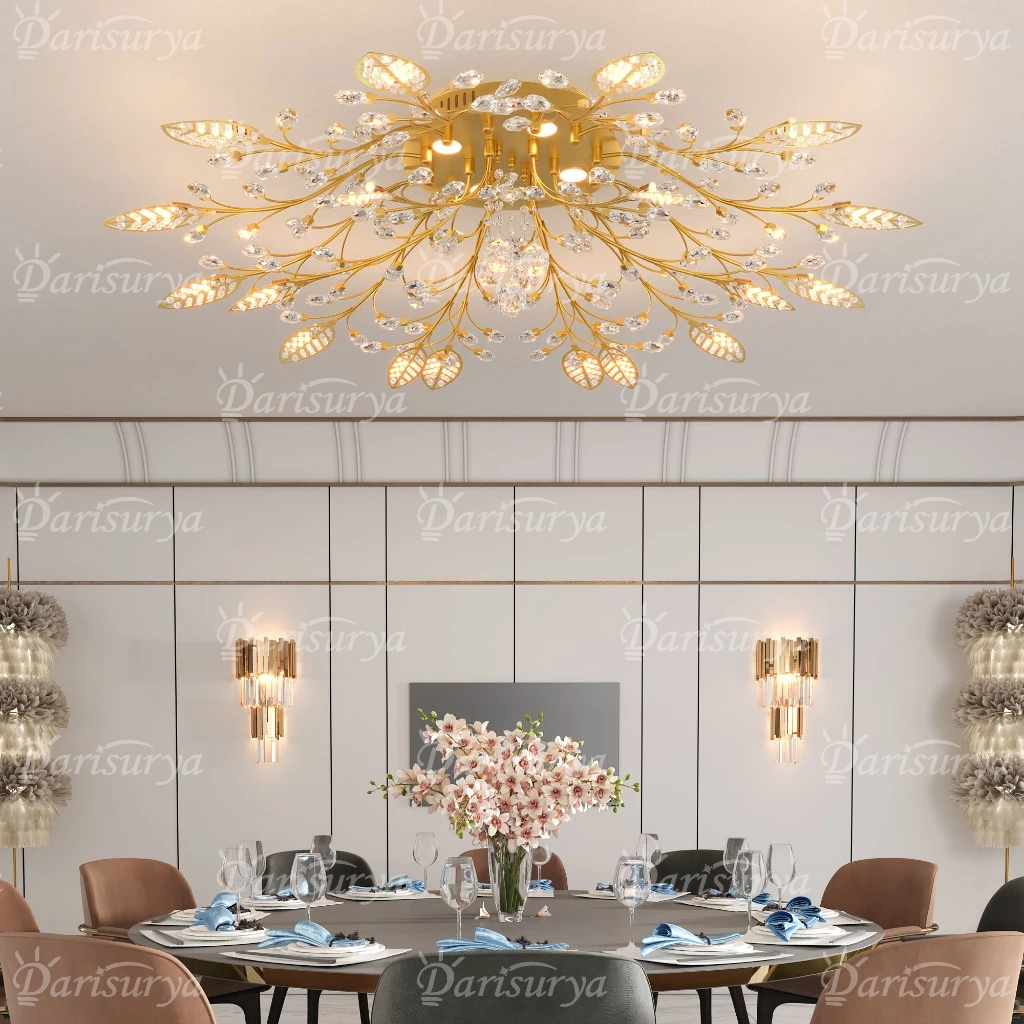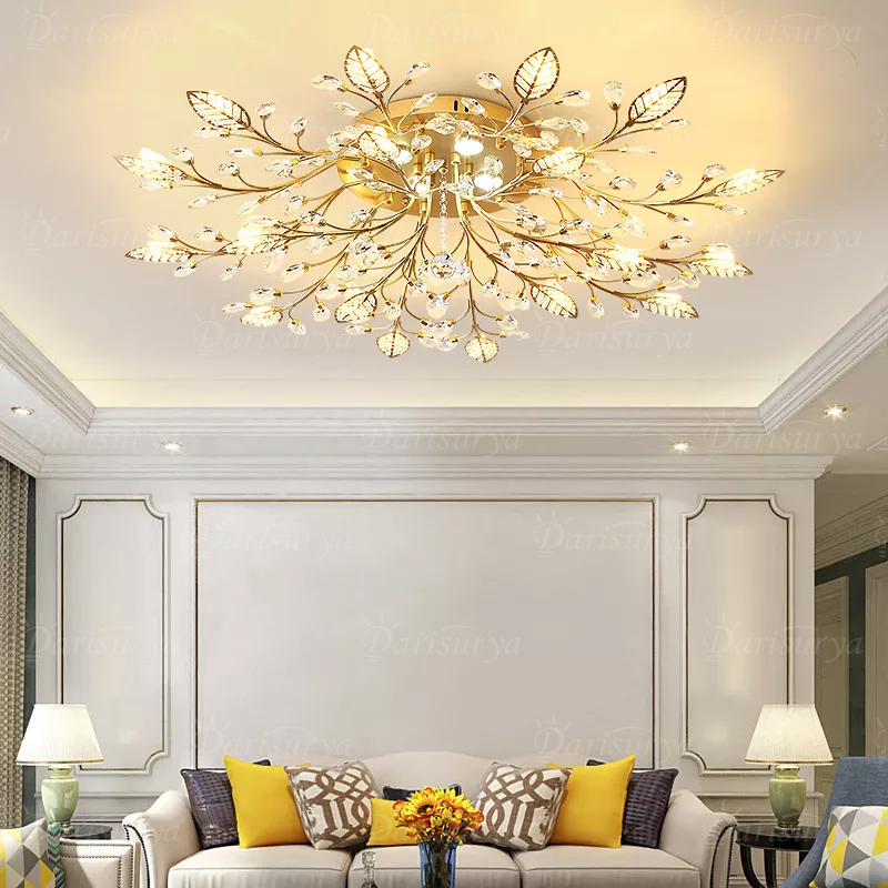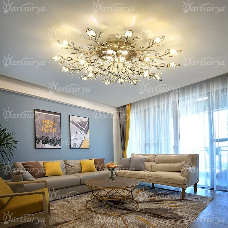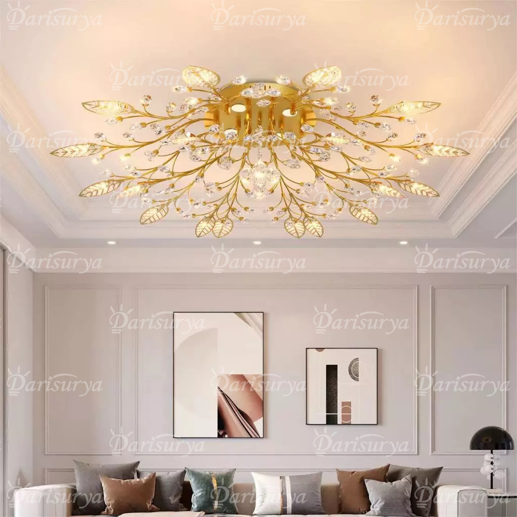 Lampu Kristal Plafon Mewah Ruang Tamu LED 3 Warna Lampu Ruang Tamu Plafon Minimalis Lampu Kristal Gantung Plafon Dekoras