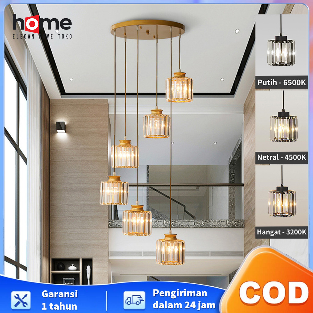 E.Home (Satu tahun jaminan)Nordik Lampu Restoran Lampu Gantung Tangga Kristal Lampu Hias Kamar Tidur Lampu Rumah Ruang T