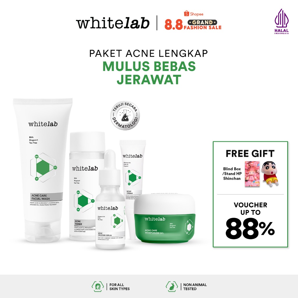 Whitelab 5 pcs Paket Acne Lengkap Fal WashTonerSerumMoisturizerAcne Cream Paket Skincare