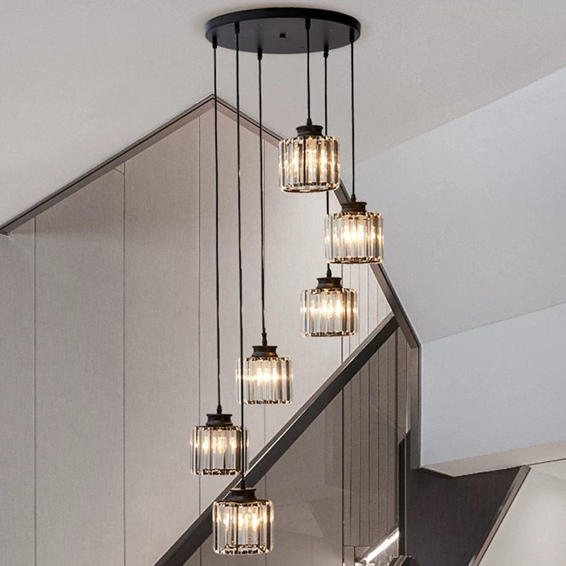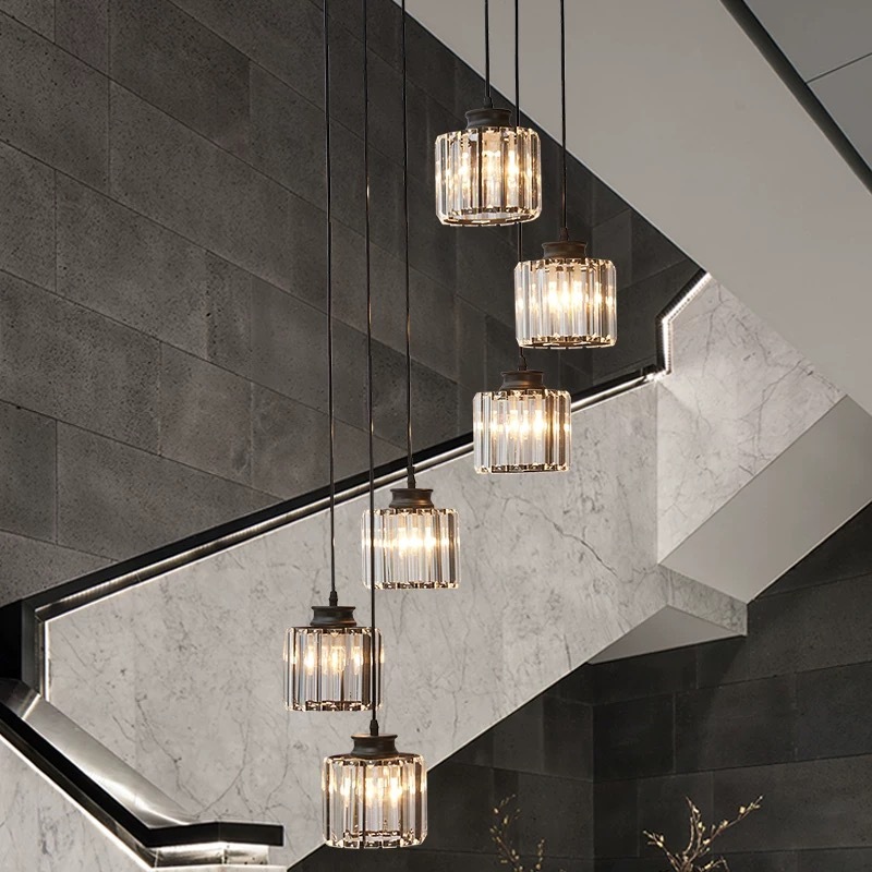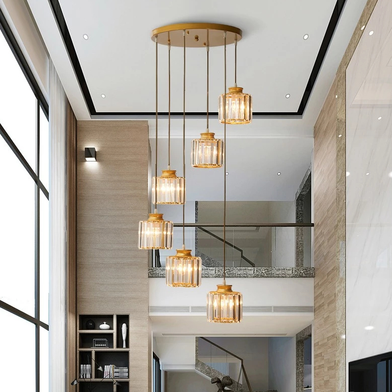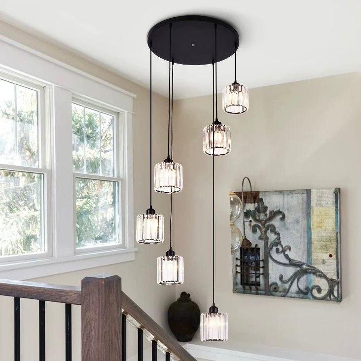 5566 Lampu pengganti tangga berputar Nordic Lampu Gantung Kristal Ruang Makan Lampu Gantung Tangga
