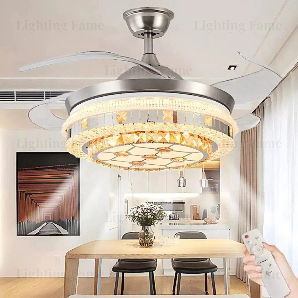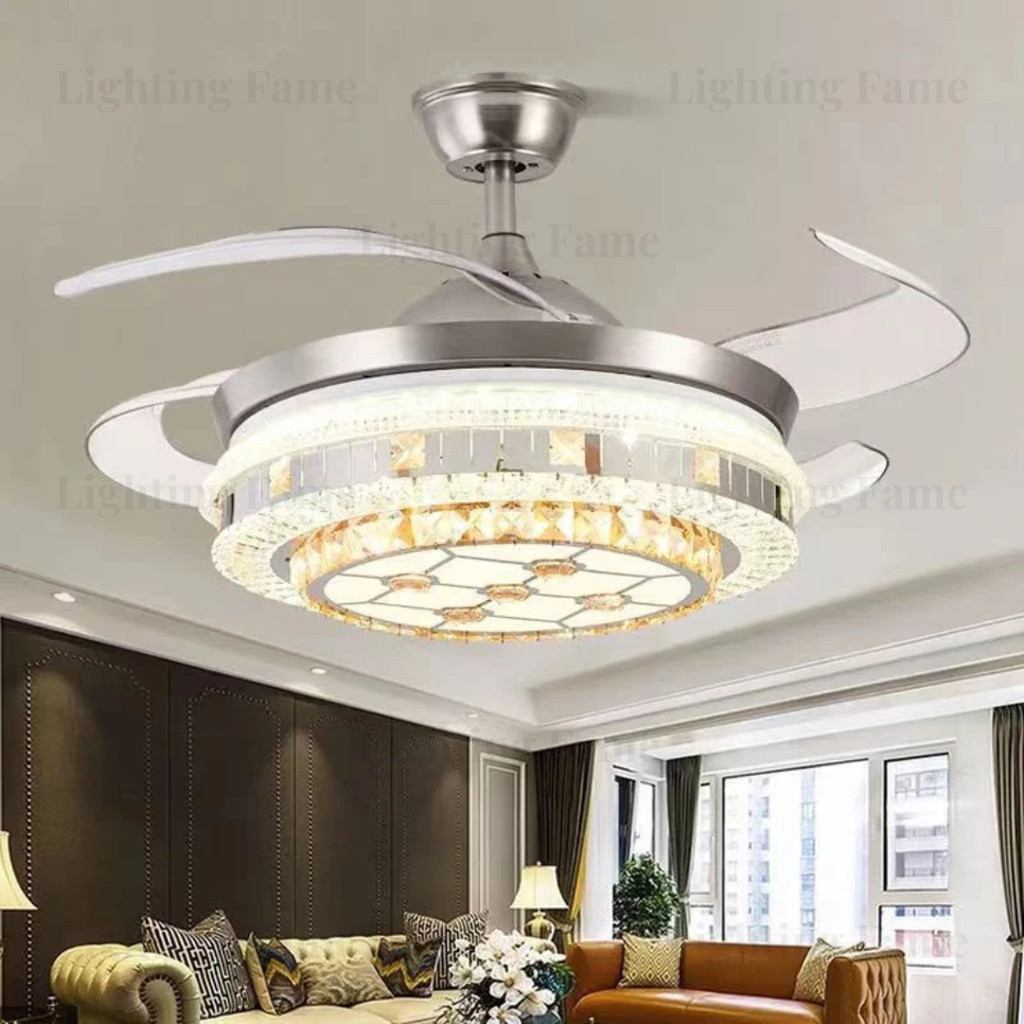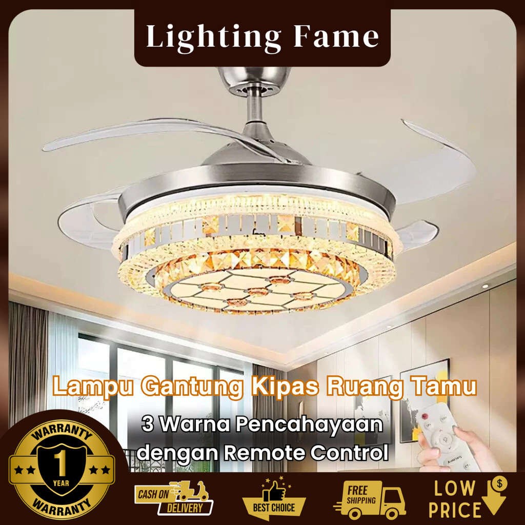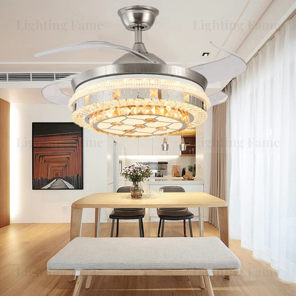 LIGHTING FAME✨GARANSI 1 TAHUN✨Kipas Lampu Gantung Kristal Chandelier Mewah Remote Control Ruang Tamu Ruang Makan Kamar T