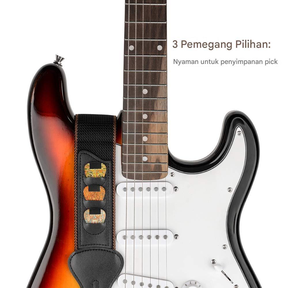 Strap Gitar dengan 3 Slot Picks, Tali Super Lembut untuk Gitar Akustik, Elektrik, Bass