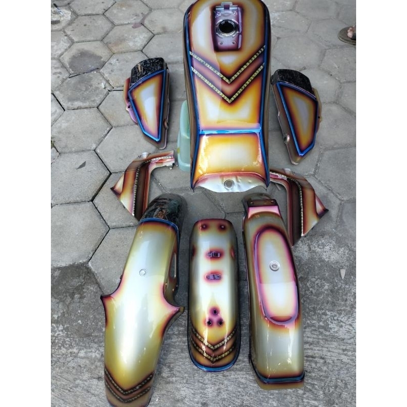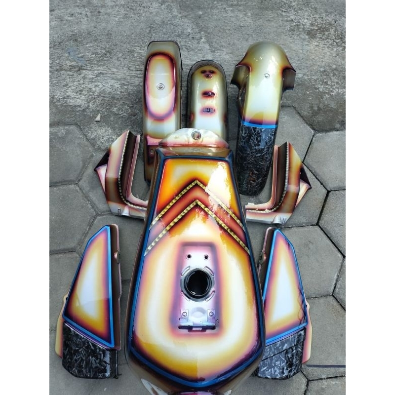 cover body set Yamaha RX king new costum cat titanium efek glosy