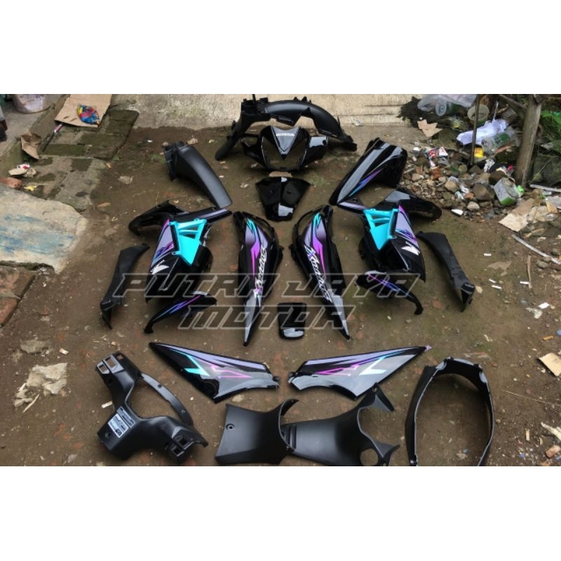 bodi set supra x 125 custom decal cyan premium kap supra x 125 dek bodi set supra x 125 custom fullset stripping komplit
