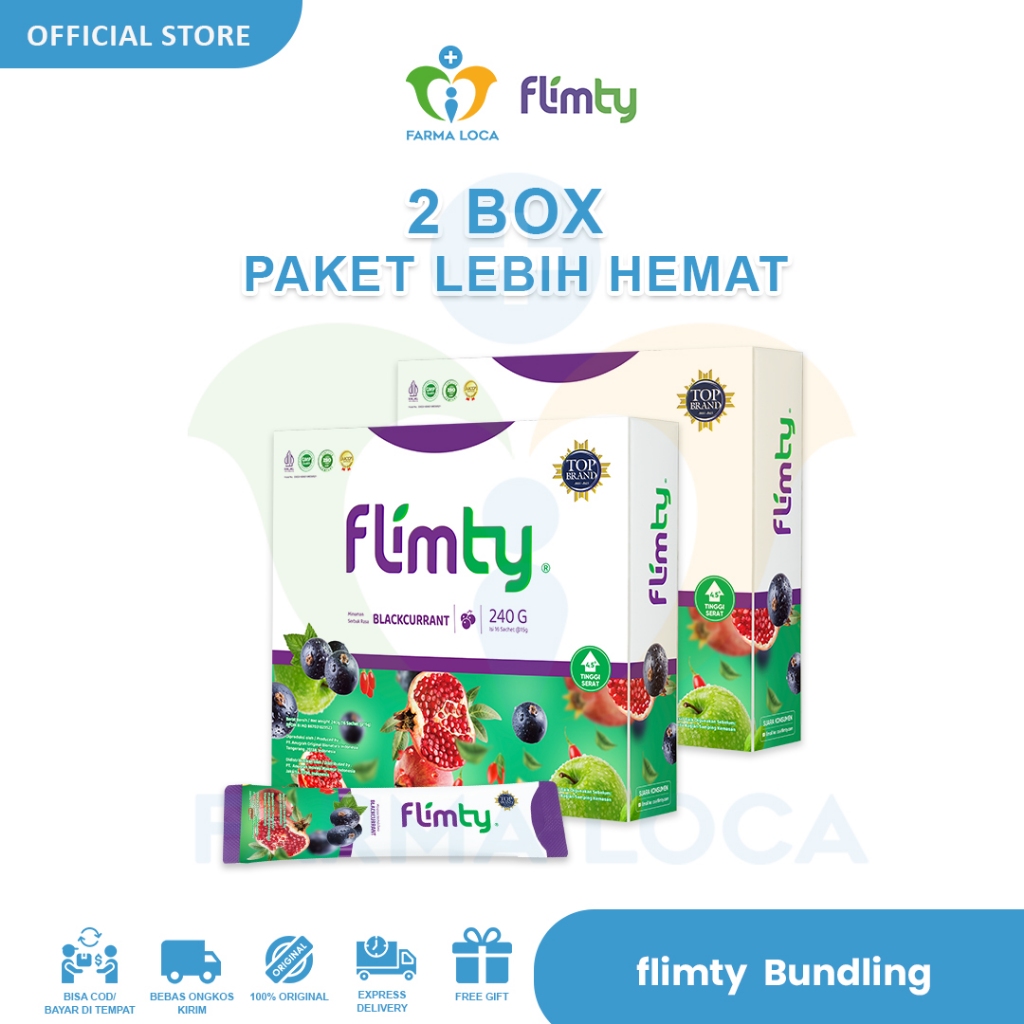 Flimty Fiber - 1 Box isi 16 Sachet | Bundling 2 Box Paket Lebih Hemat - Fit Slim and Healthy | Detox Penurun Berat Bada
