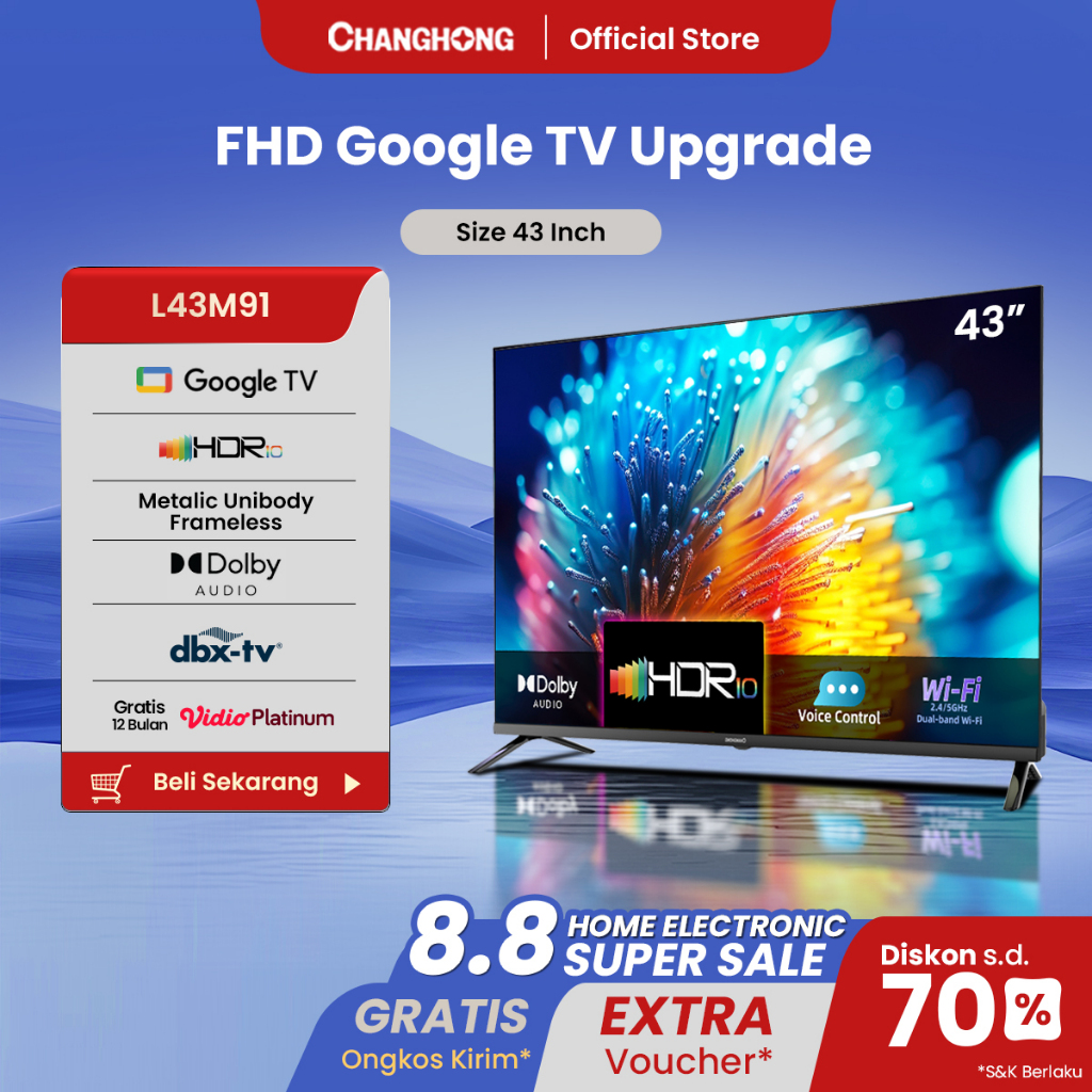 [Mall] CHANGHONG 43 INCH NEWEST ANDROID 11 FRAMELESS | SMART TV DIGITAL LED TV FHD - NEFLIX YOUTUBE (L43M91)