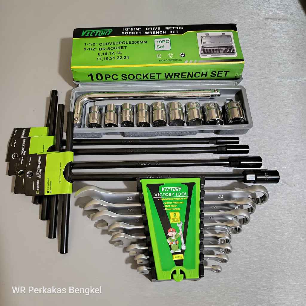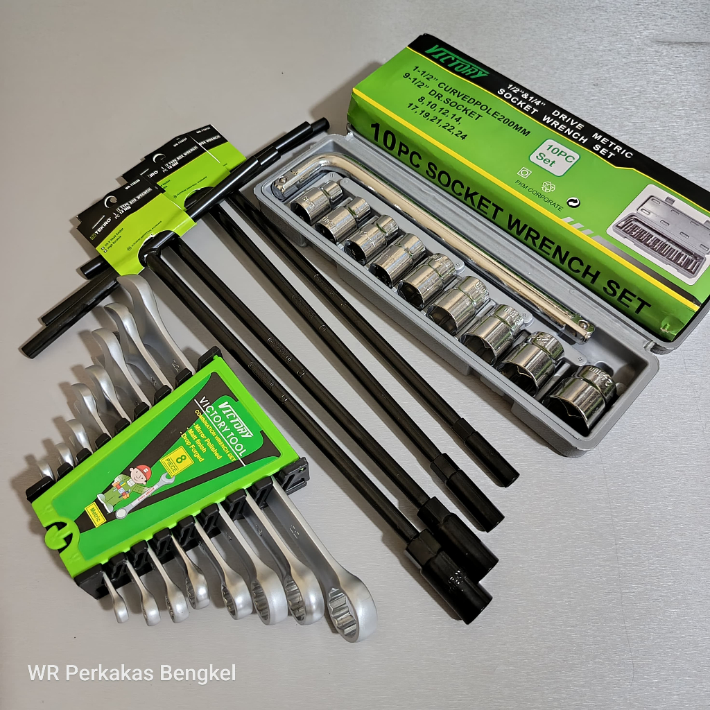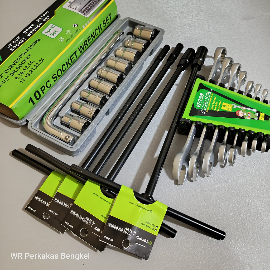 TEKIRO KUNCI T SET 4PCS KUNCI RING PAS 8 PCS CHROME VANADIUM / KUNCI SHOCK SET 10PCS 8-24MM / 1 SET KUNCI BENGKEL MOTOR