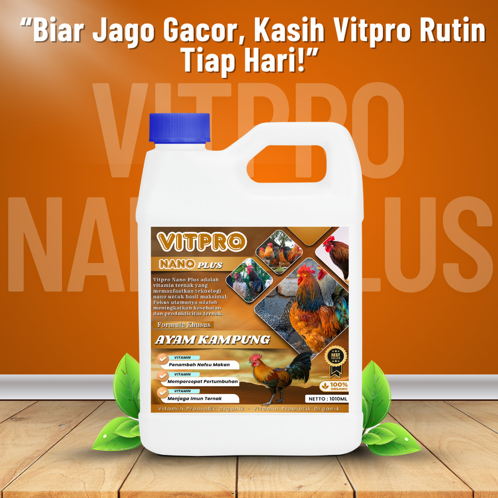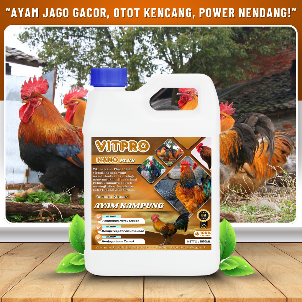 Vitpro Nano Plus Ayam Kampung – Vitamin & Probiotik Penggemuk, Penambah Nafsu Makan, Ayam Cepat Besar & Sehat 1 liter