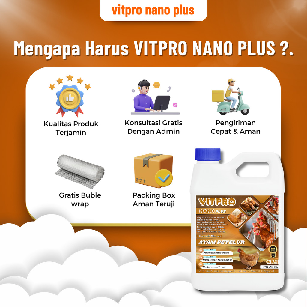 Vitpro Nano Plus Ayam Petelur – Vitamin Probiotik Penambah Produksi Telur, Nafsu Makan, Ayam Sehat Bertelur Rutin 1 lite