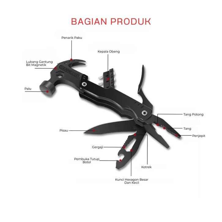 Palu MULTIFUNGSI Tang Lipat Pisau Axe Hammer Alat Survival Tools Camping Mendaki