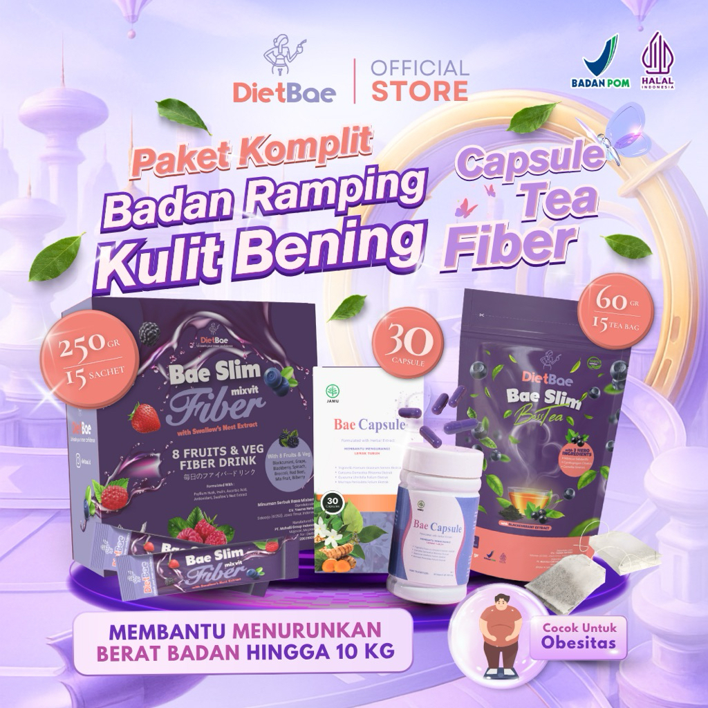 DIETBAE - Bundling 3 Produk Pelangsing Baeslim Fiber, s + Tea 15's