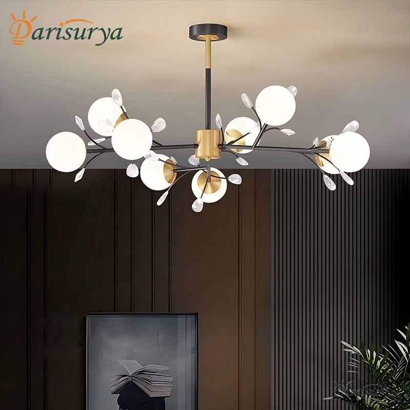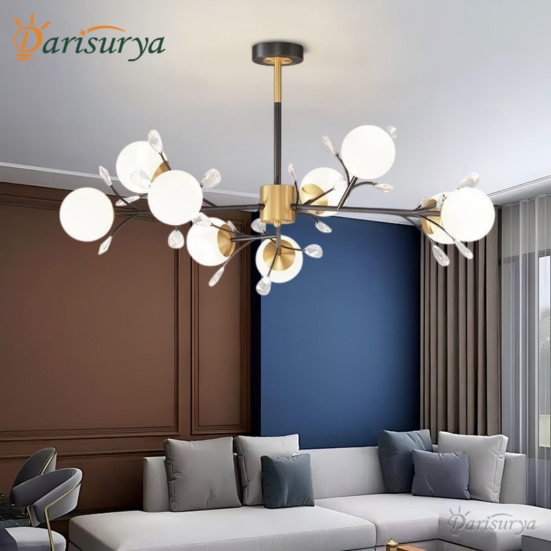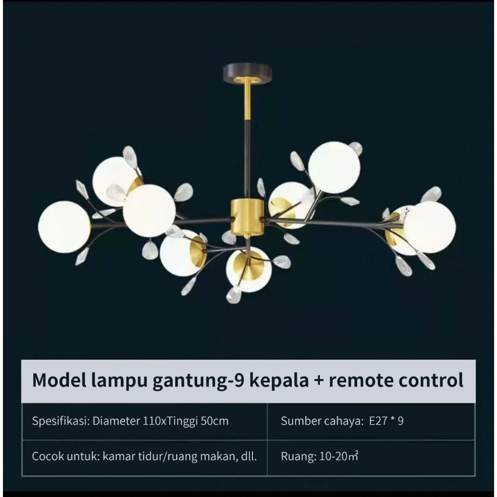 Lampu Kristal Gantung Mewah 9 Head 3 Warna LED Nordic Dekoratif Ruang Tamu/Kamar Tidur/Hotel/Bar AMG