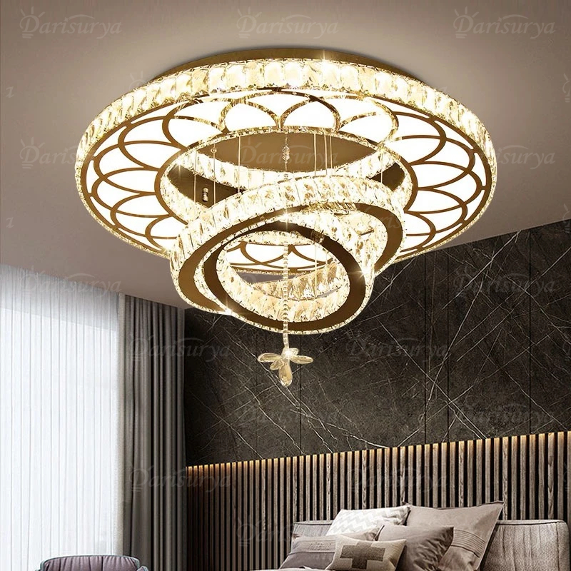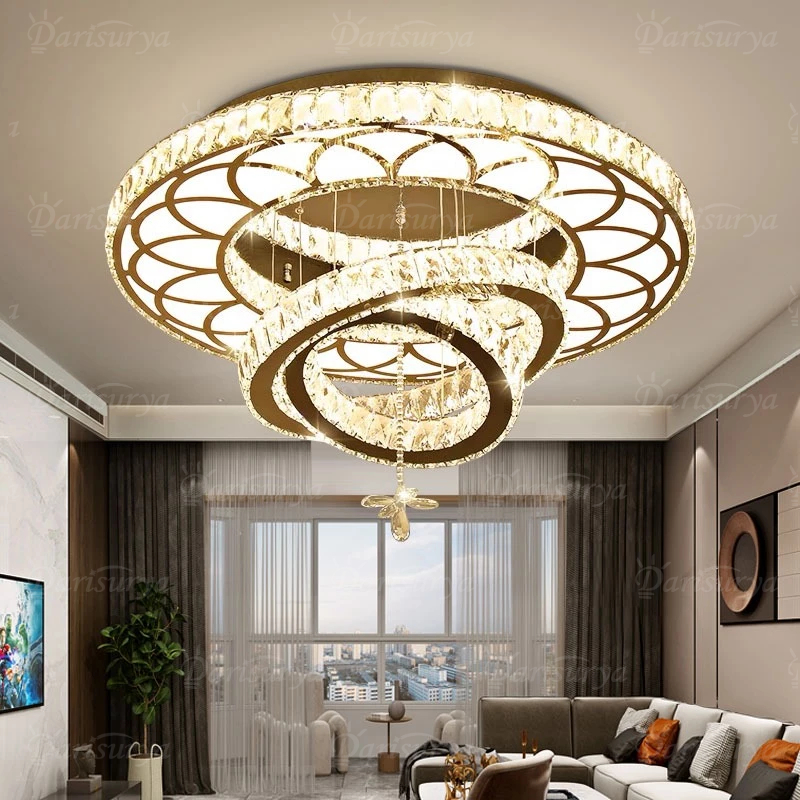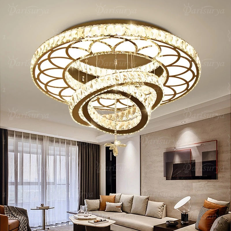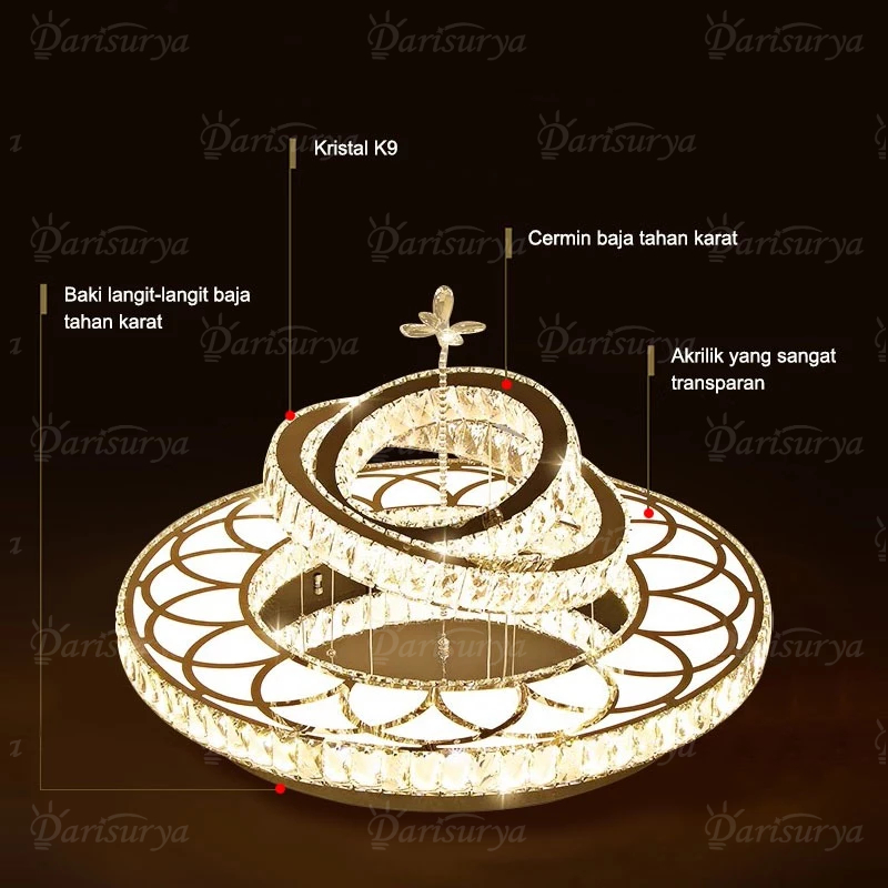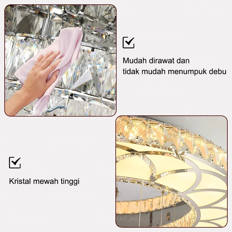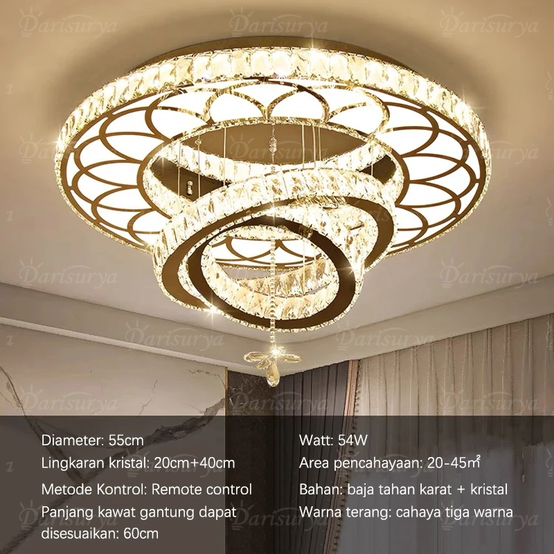 ✌Kemewahan Cahaya✌Lampu Gantung Kristal Besar Ruang Tamu Mewah dekorasi REMOTE KONTROL 3 Warna LED lampu Hias Plafon kri