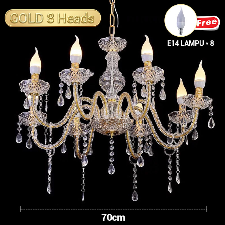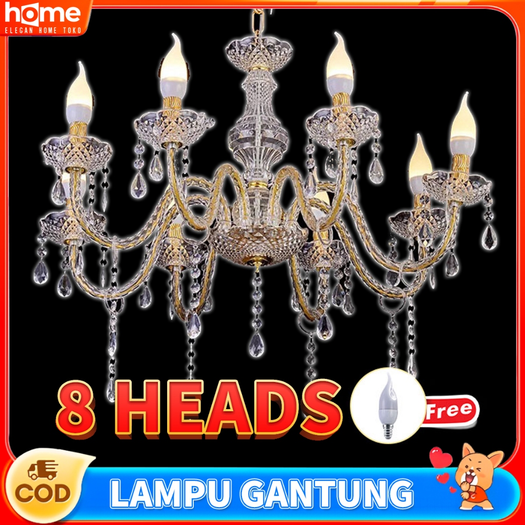 ✨Termurah ✨Lampu Gantung Kristal Akrilik Isi 6/8/8+4 Bohlam Termasuk Bohlam,Dekorasi Pelaminan Lampu Ruang Tamu Lampu Ga