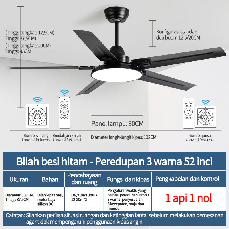 ⭐Garansi 1 tahun⭐ E.Home 52‘’ Kipas Angin Plafon Dengan Lampu - Kipas Angin Langit-langit Terintegrasi Dimmable Dudukan