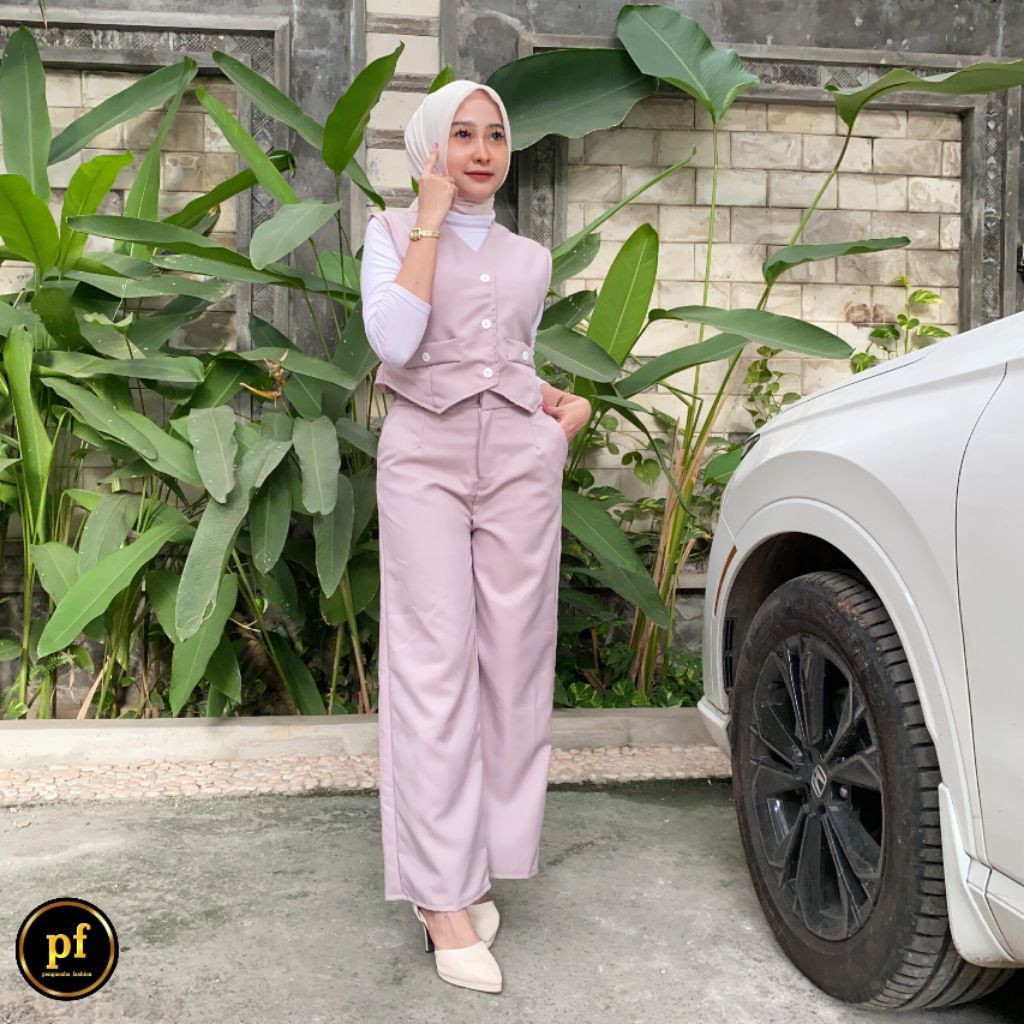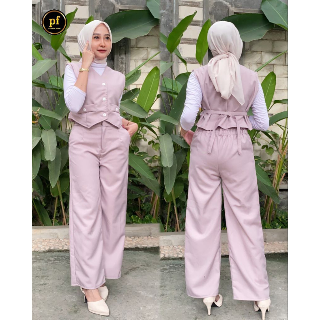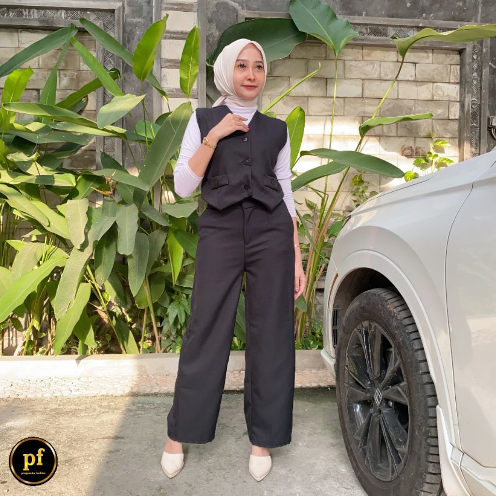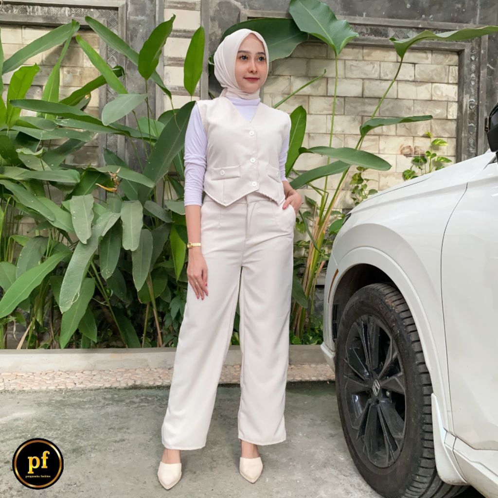 One Set Vest Setelan Vest Crop Bahan Semiwoll Luxury Premium