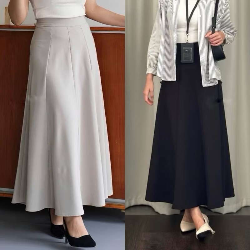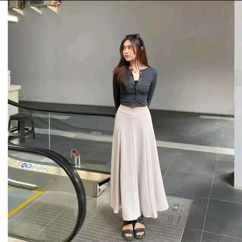AUDY KOREAN LOOSE MAXI SKIRT ROK FLARE WANITA ANTI KUSUT POLYESTER PREMIUM NEED.CO