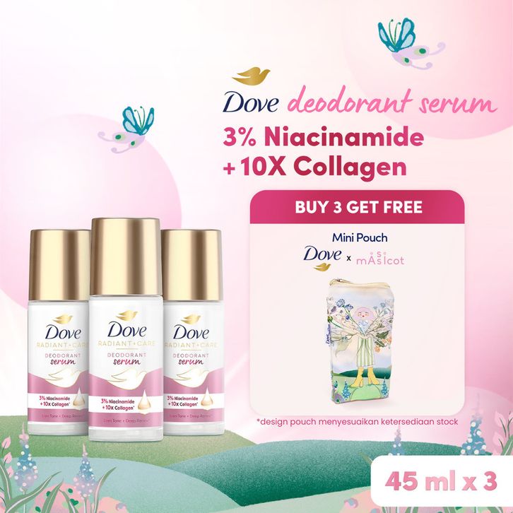Buy 3 Dove Deodorant Serum Roll On 3 Niacinamide + 10x Collagen 45ml GET Massicot Mini Pouch