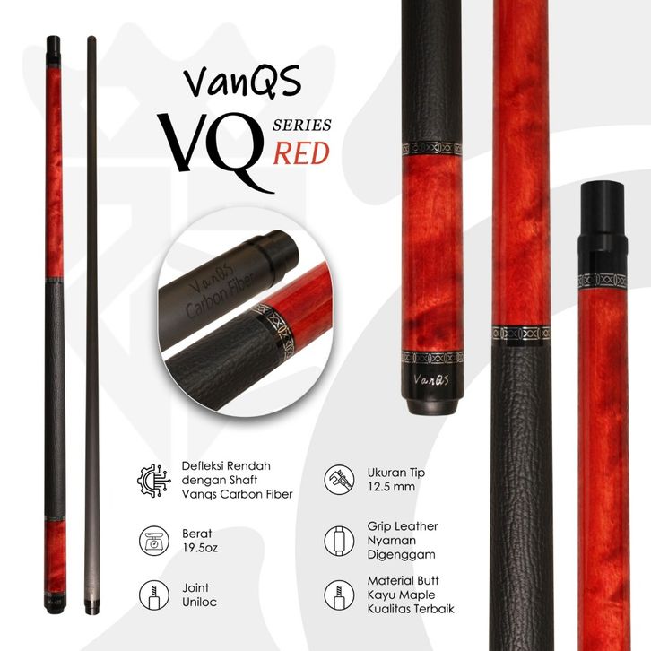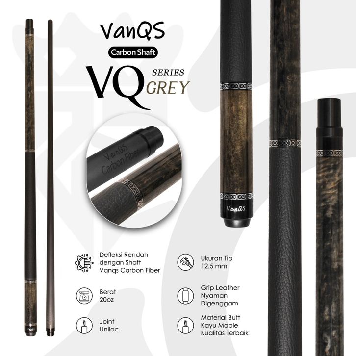 VanQs VQ Series Stik Billiard Carbon Low Deflection - Paket Lengkap - Stick Billiard Aksesoris