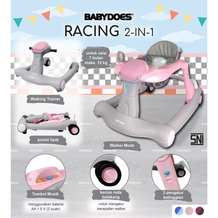 baby walker Babydoes Racing 2 IN 1 WALKER . WALKER TRAINER Untuk Belajar Jalan