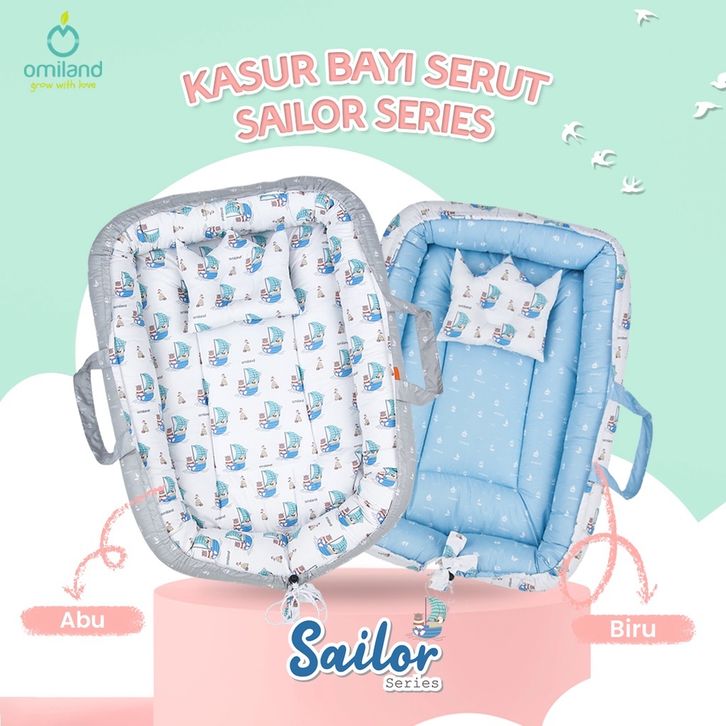 kelambu bayi Omiland Kasur Bayi Serut + Kelambu Kojong Bisa Dilepas Alpaca Sailor Series
