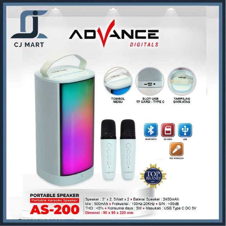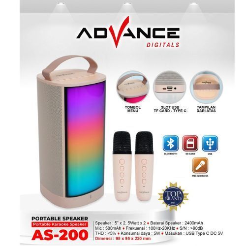 ADVANCE PORTABLE SPEAKER BLUETOOTH KARAOKE MINI AS-200 FREE 2 MIC speaker bluetooth polytron