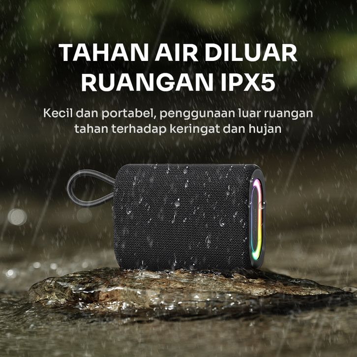 ROBOT RB190 Speaker Bluetooth 5.4 Portable Powerful Bass 5W Tahan Air IPX5 dengan Efek Lampu RGB dan M0DEe TWS Pemutara