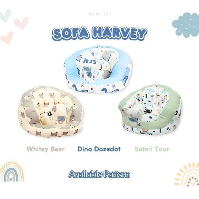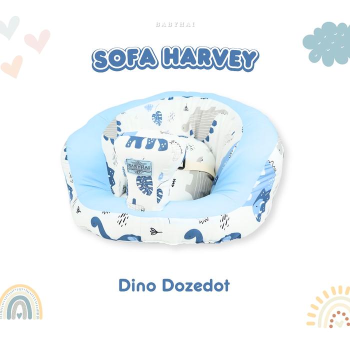 Sofa Bayi Harvey BABY HAI dengan Bantal Kursi dan Penahan untuk Belajar Duduk Bayi - Merah - Little Dino
