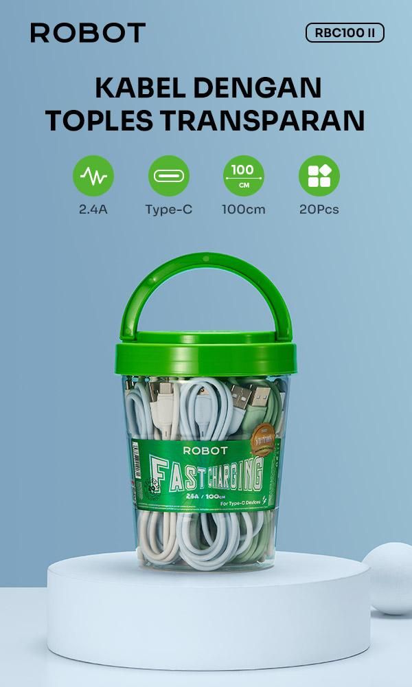 Kabel Data Type C ROBOT RBC100S 1M Data Cable 24A Original - Random Colour