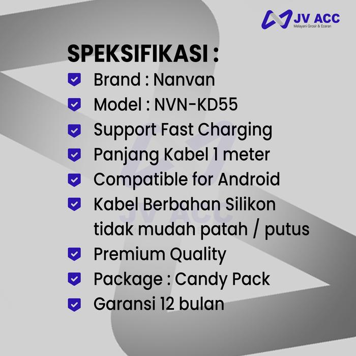 NANVAN NVN-KD55 USB KABEL DATA SILIKON CHARGER HP MICRO / TYPE TIPE C FAST CHARGING - BIRU MICRO