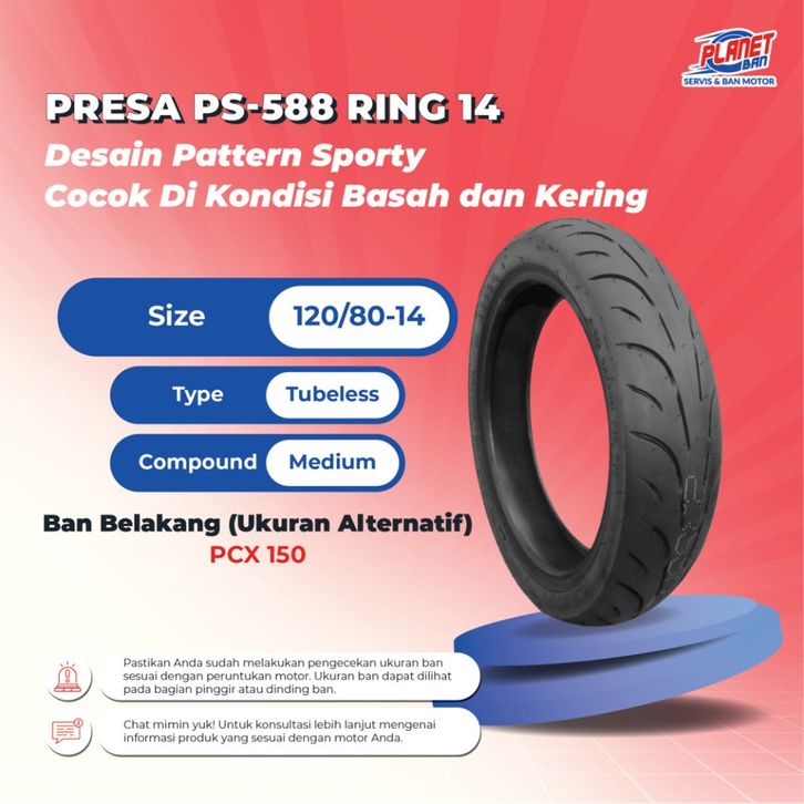 Ban Motor Ring 14 - 120/80 Presa PS-588 (Ban Motor PCX 150)