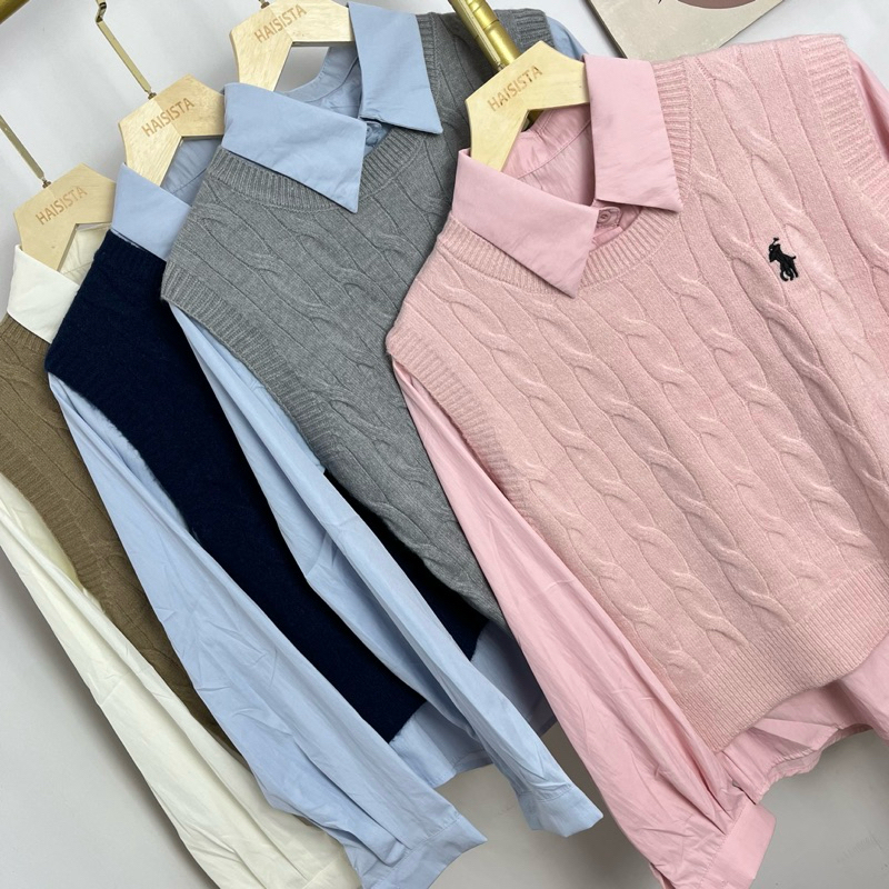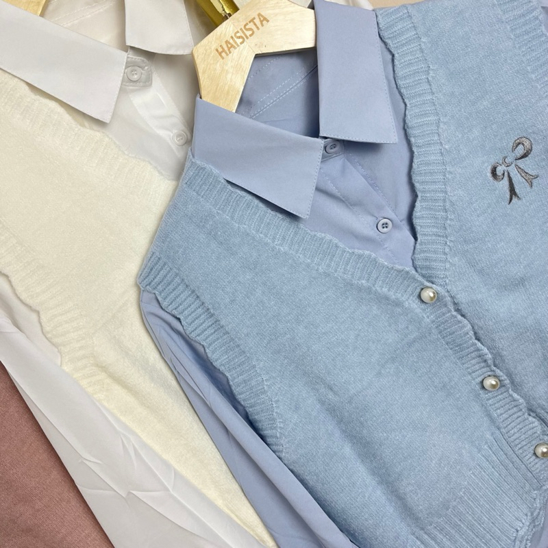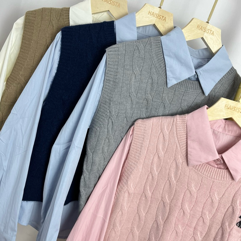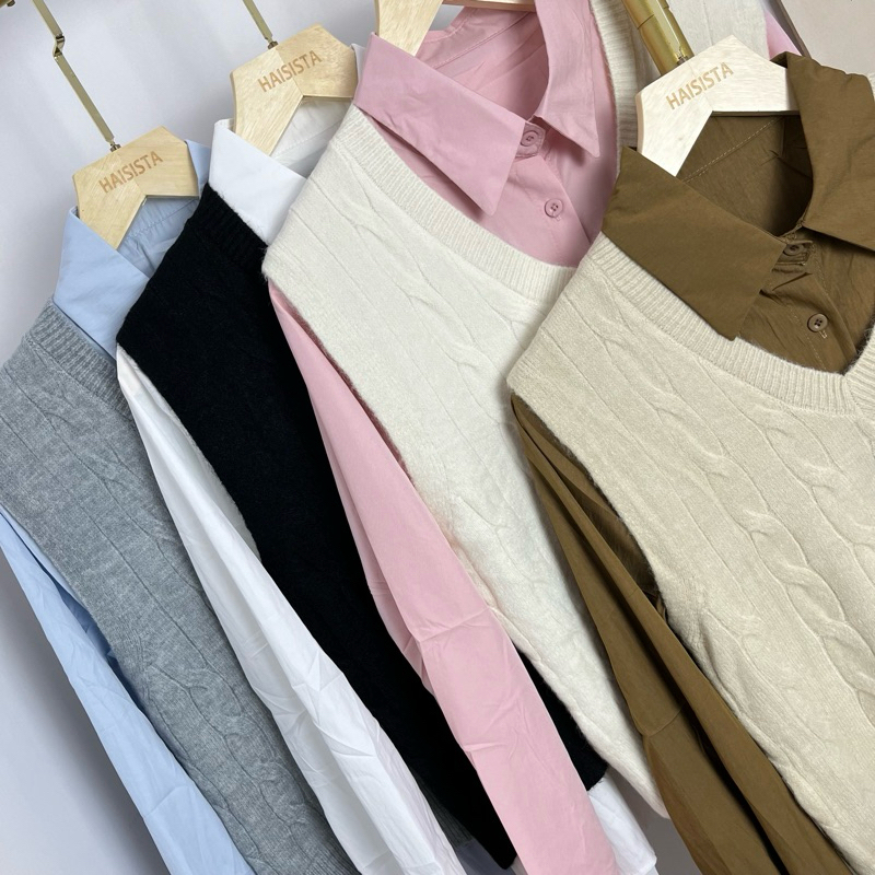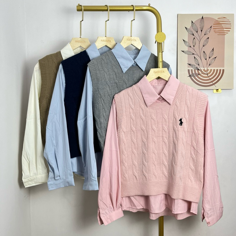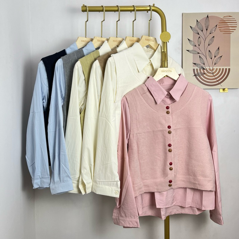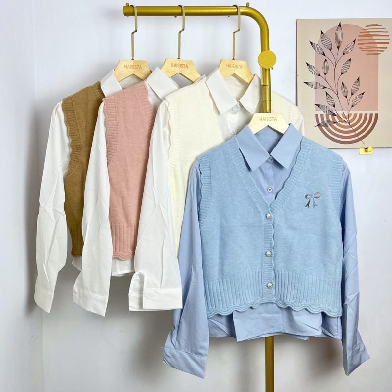 Haisista - Kemeja + Vest Knit / Baju Set Atasan Wanita Katun Rajut / Shirt